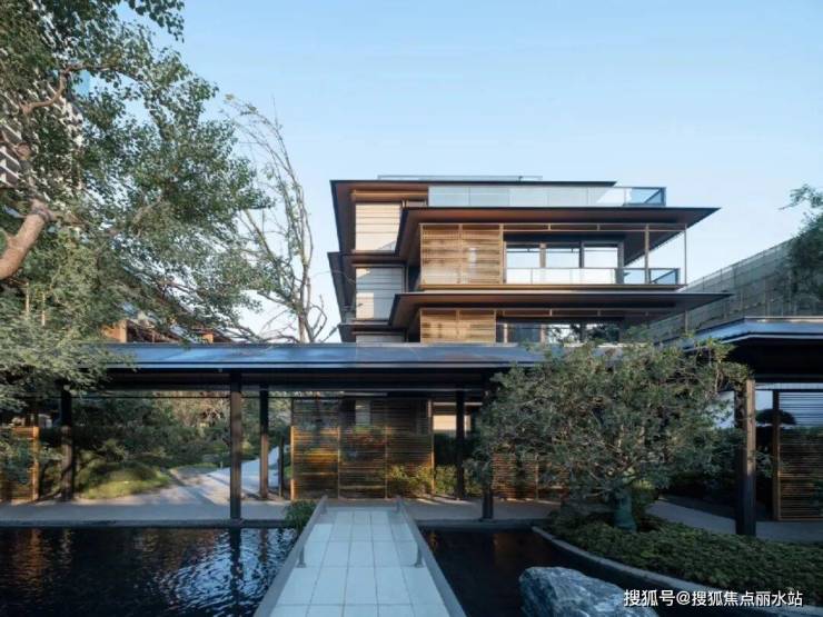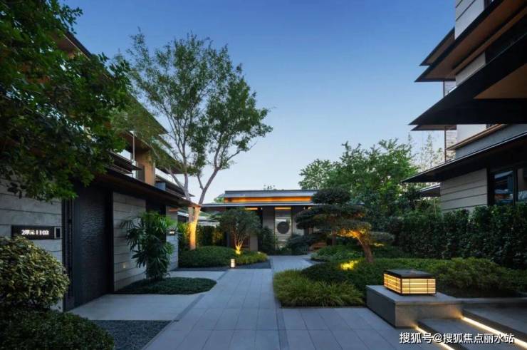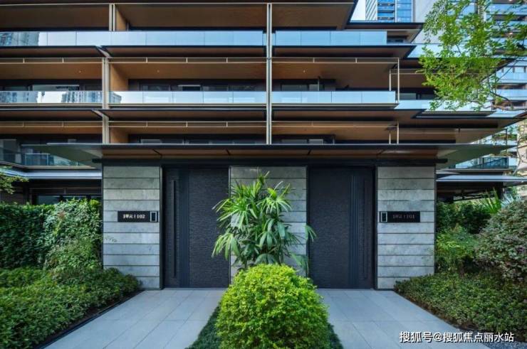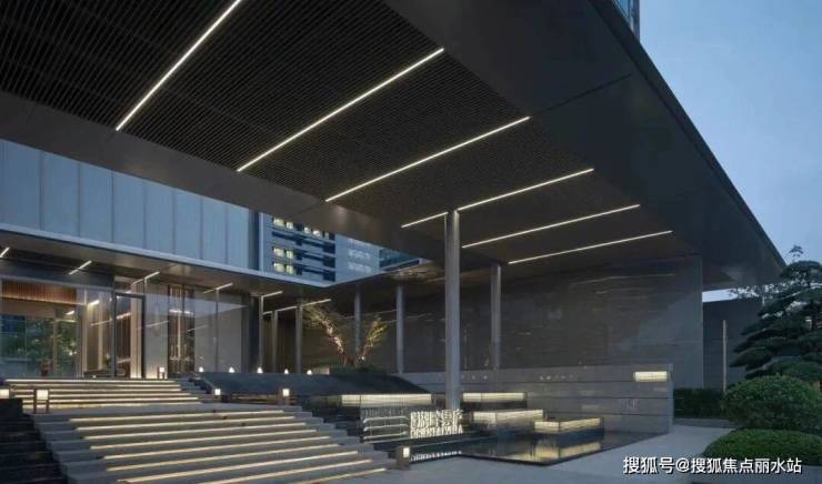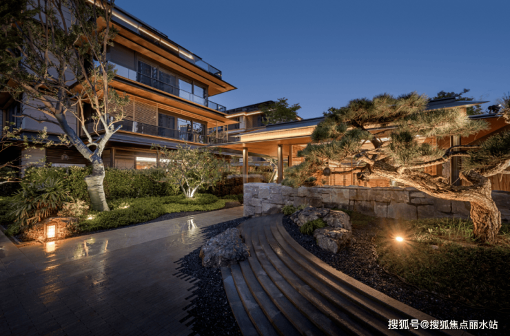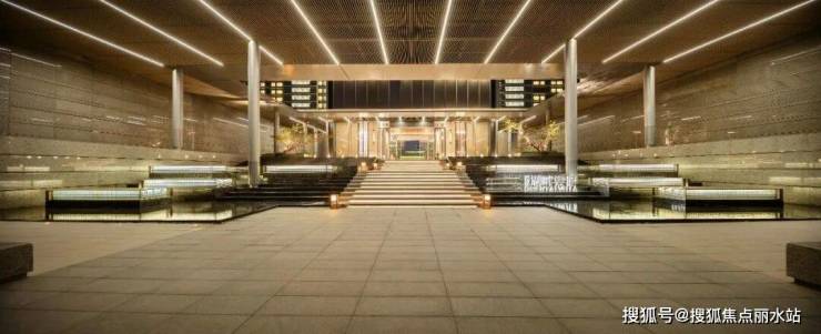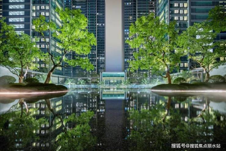从步行归家动线进入小区,需要走上约4米高的阶梯才能进入归家大堂,阶梯两边是潺潺流水。流淌的不仅是雅致与柔和,更有财气与吉祥。