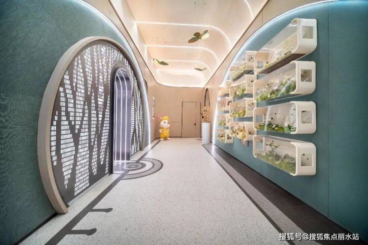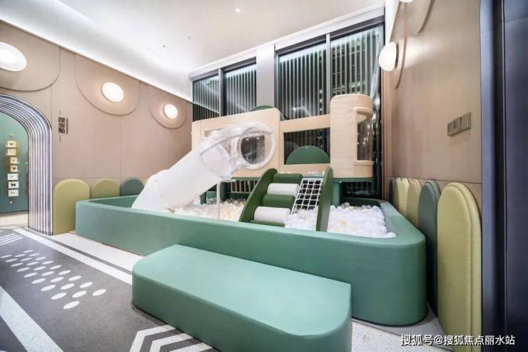 中央车站的一侧是业主会所——“庐外客厅”。绿城把物业前台放在了这里,咨询、报修、生活缴费、家政等服务集成于此。会所内的中轴泳池,一片湛蓝,最抚人心。泳池周围,健身房、淋浴更衣、储存柜、户外休闲等一应俱全。今后每年夏天,小业主将在这里学习游泳。