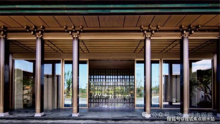 来到社区大门,70米恢弘入口如画卷一般徐徐展开,社区大堂采用传统民居建筑中的“七开间”形制,既传承东方礼制,又彰显空间尺度,成为业主归家的第一重精神图腾。