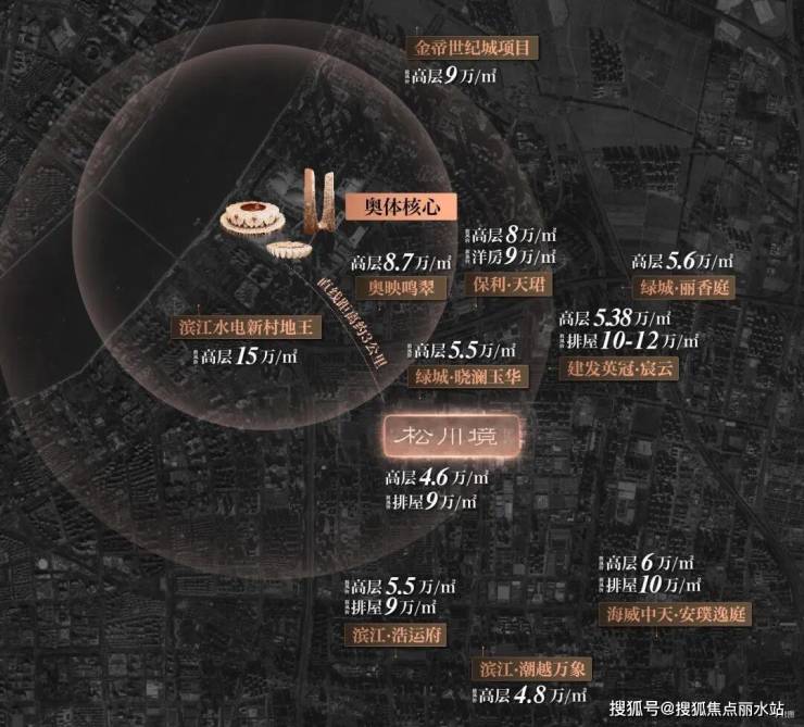 在奥体首座天街(规划)、奥体印象城、SKP(在建)等地标级资源簇拥之下,松川境以约1.8低容积,以「奥体至高规模墅境住区」为名,拔萃于奥体。