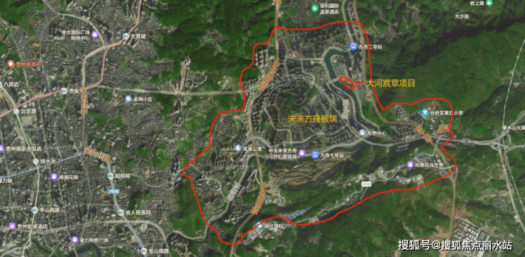 大河宸章项目在云岩区的最东区域,这里因建设有未来方舟大盘,也有了“未来方舟”板块之称。