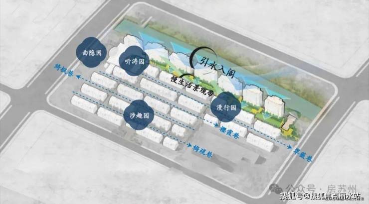 ※栋式天地叠院立面:现代简雅立面勾勒太湖水韵纹脉线条,刷新苏州天际线