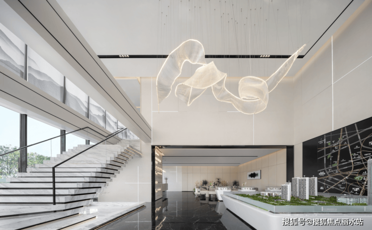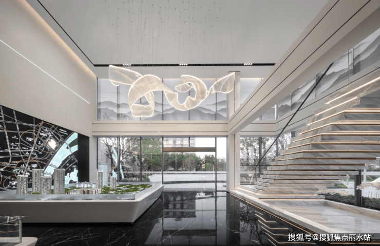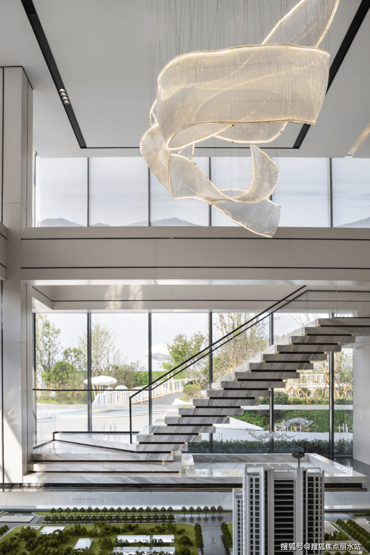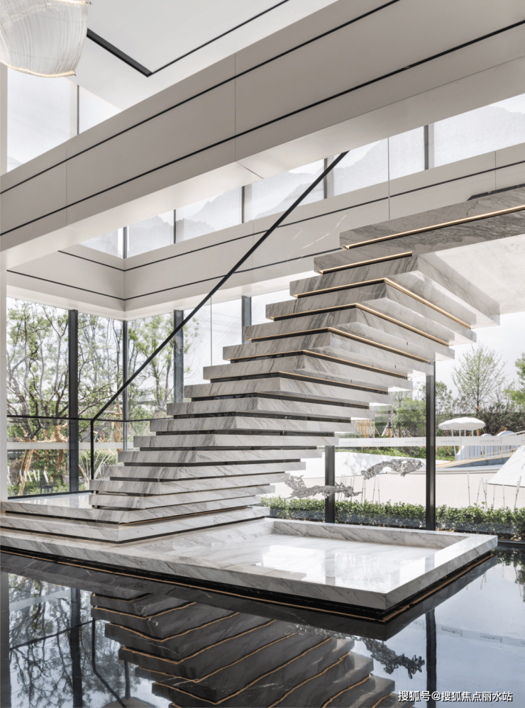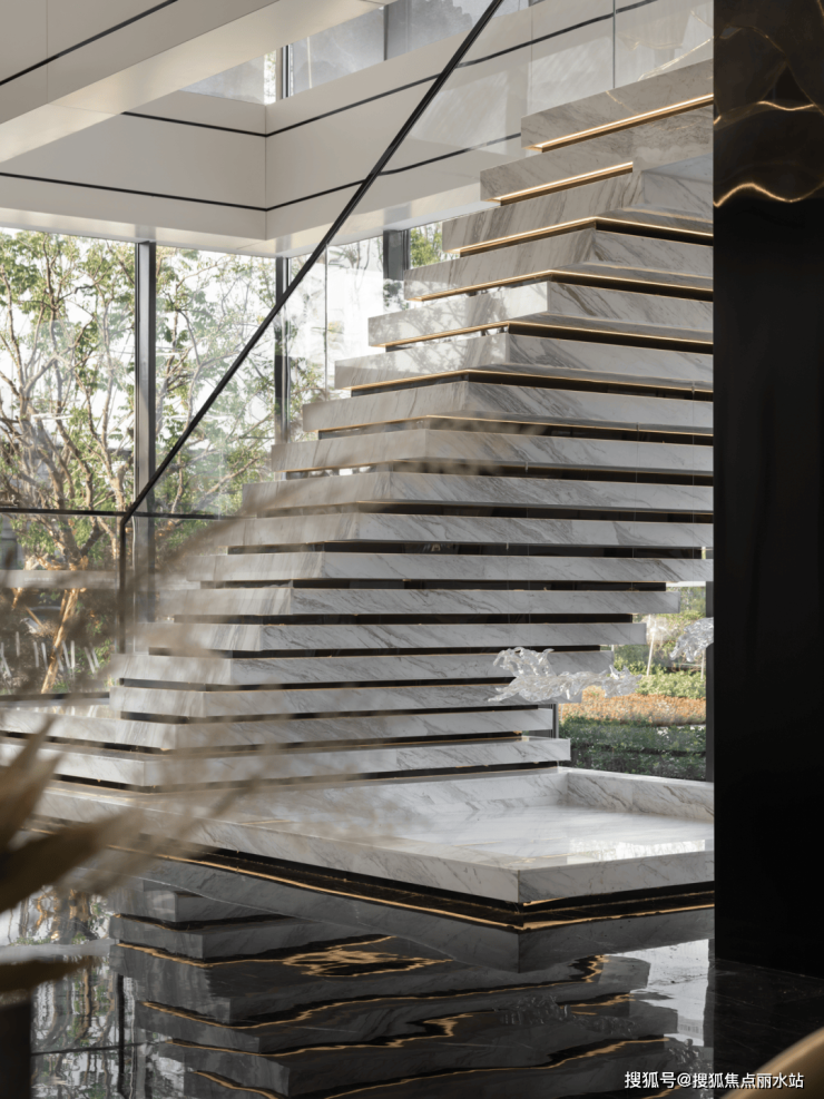 2.4米宽悬浮楼梯作为亮点之一,无论是自然采光还是一层层灯带,都使得它犹如艺术装置一样熠熠生辉。