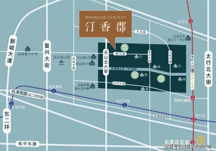 1、交通配套:临近天山大街、昆仑大街、复兴大街、和平路、裕华路,地铁1号线、5号线(规划中)、石家庄东站;