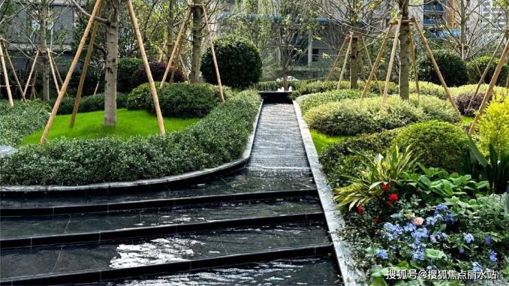 以“水”为元素,打造近 400m的归家动线,用场景代替场地谱写生活意境。
