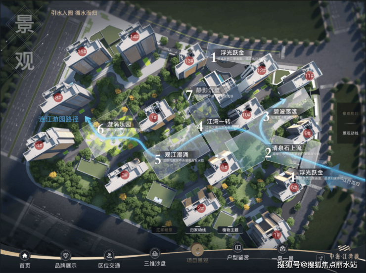 中海·江湾樾,以江景入境,定义建筑空间的腔调和气质,赋予瞰江奢居的美学艺术和价值感。整体社区根据各自亮点,打造栖江、静湾、樾境三大组团。
