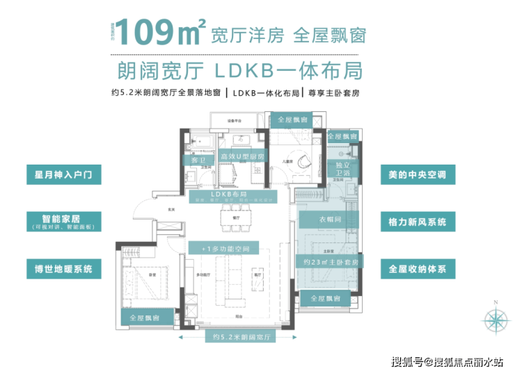 建筑面积约109㎡宽幕洋房三房两厅两卫设计,约5.2米宽厅+约3米层高,LDKB一体互联,社交、瞰景、采光皆宜。+1百变空间,实用性强格调不凡,建筑面积约23㎡主卧套房,尊崇私密,全屋飘窗,空间实用率大大提升……