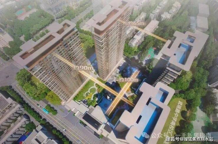 可以看到,项目1、2号楼之间的楼间距约90米,3、4号楼之间也有约65米的间距,而且东西向的纵深也达到约100米,形成完整且方正的园林。