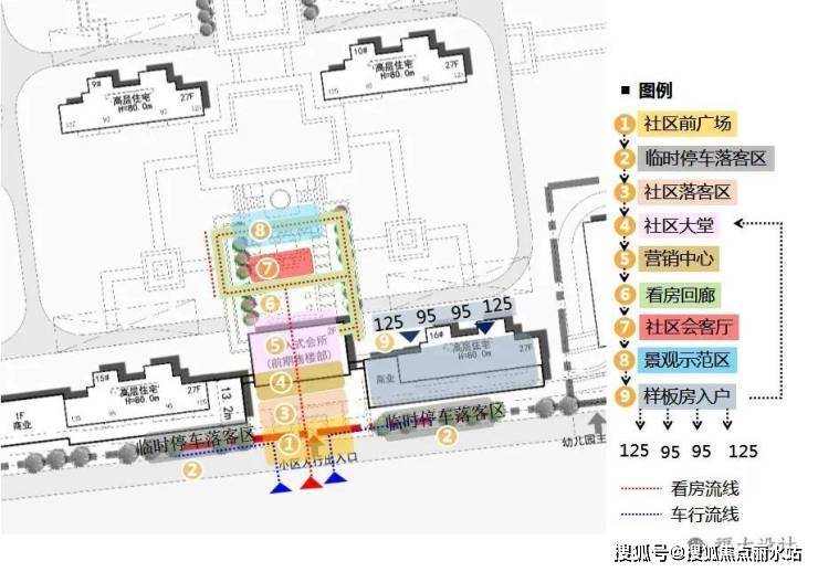 启动区位于江州大道上,交通便利,与主入口结合。中轴对称,层层递进,营造精致的看房体验。