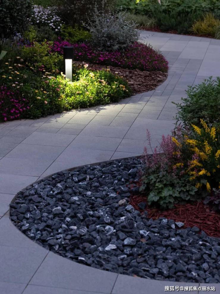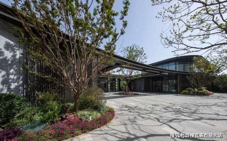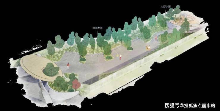 场地入口打造新颖的城市名片,通过简单的元素呈现简洁轻盈的现代结构美学,在城市界面处形成一抹亮丽的风景。铺装采用向着入口处渐变延伸的形式来引导人、车流线。硬景和软景相互渗透,和谐共生。