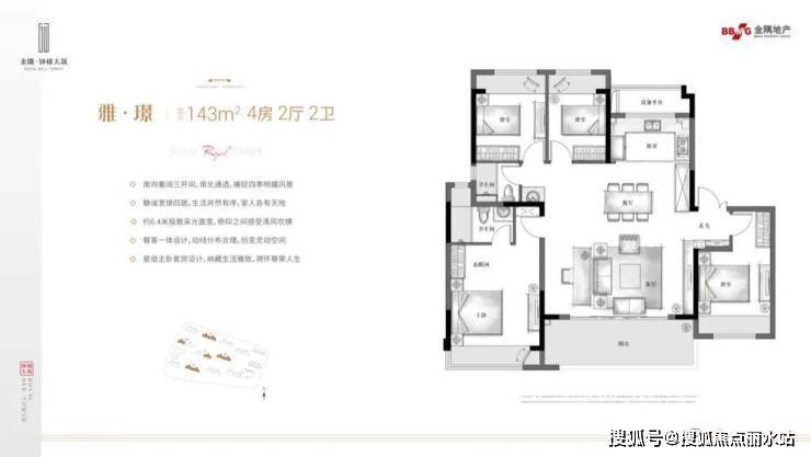 项目提供了建筑面积约 112-175㎡的三房、四房户型,丰富多样的选择满足了不同家庭结构和需求的购房者。以 143㎡户型为例,入户处预留了独立玄关空间,精致实用,既能增加收纳功能,又能营造出归家的仪式感。客厅方正宽敞,可容纳家庭的众多场景,无论是亲友聚会还是日常休闲,都能轻松应对。南向连接观景阳台,不仅增加了室内采光,还让业主可以尽情欣赏周边美景。厨房采用 L 型操作台设计,洗切炒流线工作更加顺畅,让烹饪成为一种享受。四个卧室均带飘窗设计,可将室外景观引入室内,为主人营造出惬意的居住氛围。主卧套房设计,带独立卫浴,方便主人日常生活,彰显了居住的私密性和尊贵感。