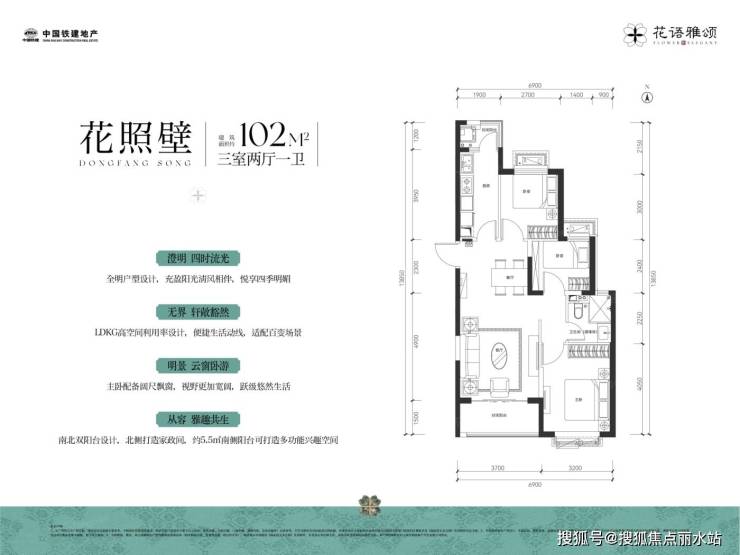 中国铁建·花语雅颂 平层户型·建面/102㎡