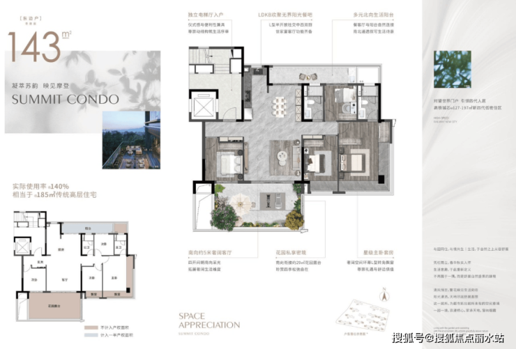 🥇建面约143㎡:欢聚无界约29㎡花园露台实际使用面积相当于传统住宅185㎡传统高层住宅