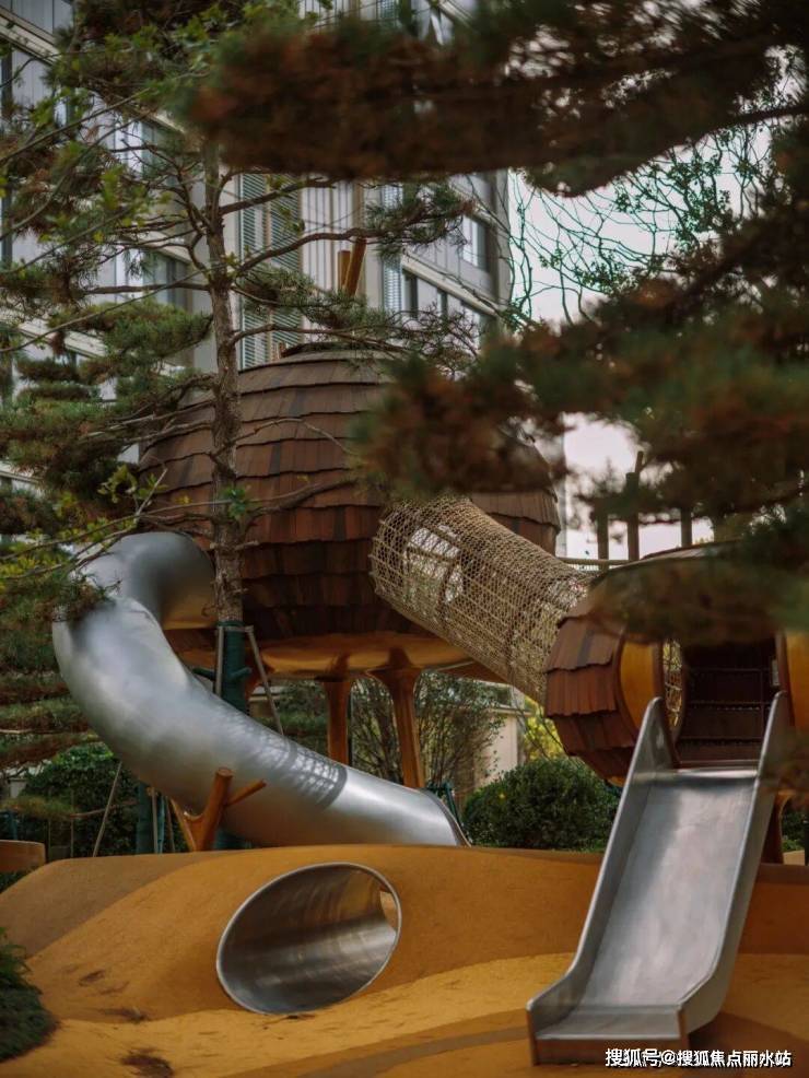 这里利用起伏地形营造自然山谷氛围,攀爬设施、探索路径与自然认知区相得益彰,孩子们可以在阳光下追逐嬉戏,在草木间认识自然,让成长充满野趣与活力。闲暇时,家长带着孩子在园区漫步,看花草摇曳、听流水叮咚,城芯的静谧与生机在此完美融合。