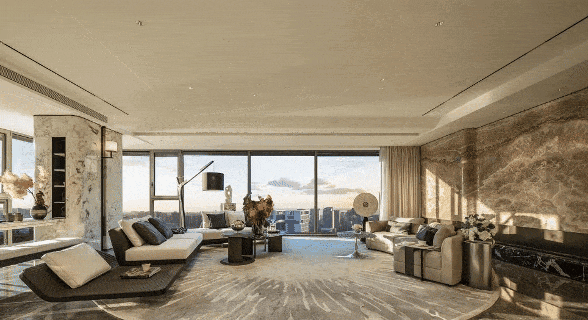 270㎡户型则是营造出超广角瞰景的无界视界。环幕视野下所承载的空间真意,是近130㎡的豪华会客厅尺度和约51㎡的奢阔酒店套房式主卧,是约22m南向奢阔面宽和近20mL型超大阳台。在空间的营造上,澐璟再一次突破空间壁垒,将隐和奢、极和境进行沉浸式演绎。