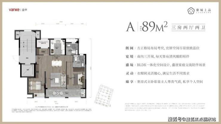 当然,回归到居住本身,吸引购房者目光的,相信依然是万科·婺城上品的户型设计。面对改善时代的野心勃勃,当下在金华新房市场上,想找到地段核芯的高品质小户,很是难得。而如果要梳理出婺城新区在售的“稀缺名录”,以建筑面积约89㎡为代表的小户型房源几乎“绝迹”。