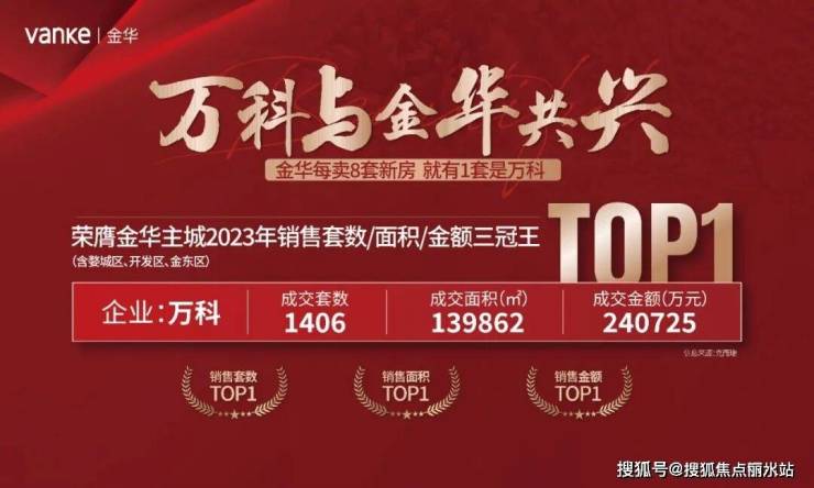 2019年万科首入金华,五载深耕,万科更懂金华。截至目前金华万科已有超4000户业主,在2023年成交套数更达到了1406套,荣膺金华主城2023年销售套数/面积/金额三冠王, 2023年金华每卖八套新房就有一套是万科!此次热销的婺城上品,作为万科2024都会进阶作品,是万科红盘的迭代,更引领着一城进阶人居范本的升级。火爆并非偶然,持续的热势背后,是世界500强万科的实力彰显。