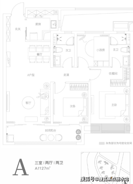 A户型建面约127-130平户型,三室两厅两卫,该户型三开间朝南,南面带有大阳台,采光好,户型动静分区,主卧为套房设计,居住舒适度高售楼处电话400-8787-098接通后输入5678【营销中心】