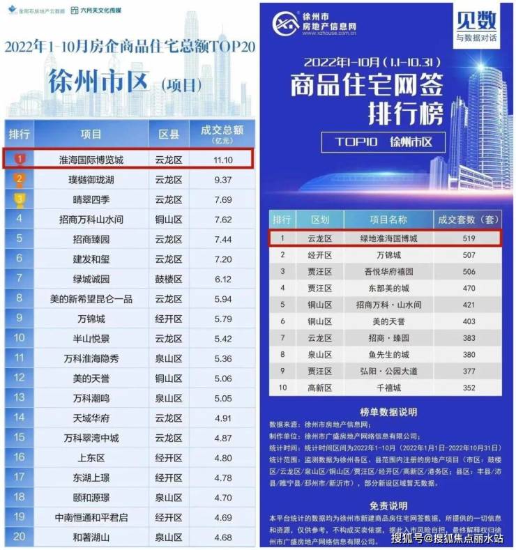 2022年上半年,淮海国博城以9.07亿的成绩,问鼎徐州上半年销冠。在2022年1-10月,全城瞩目的绿地淮海国博城,再度以11.10亿元跃居区域成交金额榜首!项目自开盘以来,备受市场瞩目,住宅销售频频夺得佳绩,一直是区域里的流量红盘。