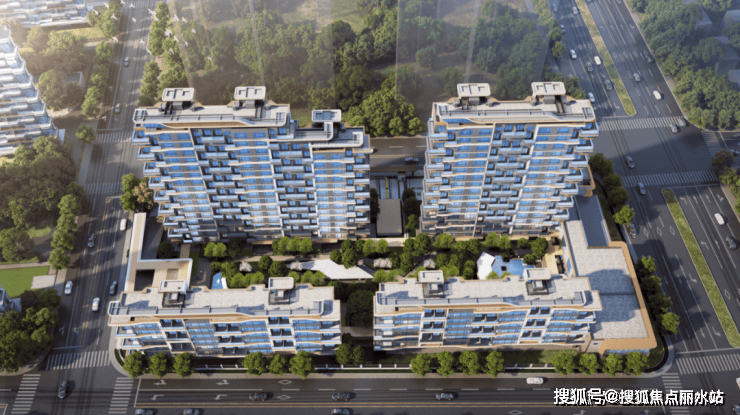 2、外立面融入了滨江流水元素,整体有现代极简美感,高颜值;
