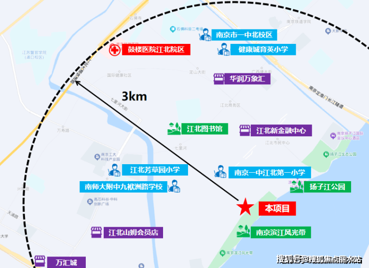 1、项目临江,拥有一线江景资源,与长江直线距离仅约300米,是今年江北待上市楼盘中离江岸最近的项目;