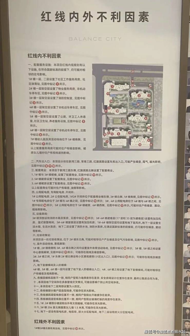 项目现场有不利因素展示,部分楼栋临近配电房及地下车库入口、及周边高压线及待建区域等,对实际居住会存在一定影响,现场购房注意楼栋位置及朝向。