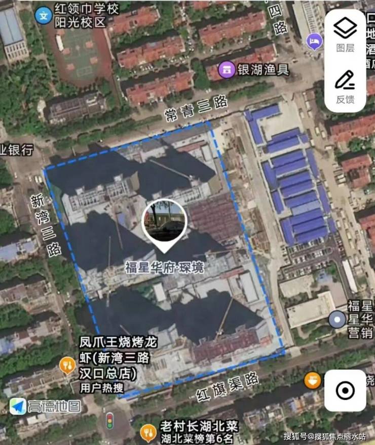 项目四至:北侧是常青三路、红领巾学校阳光校区、统建阳光北苑等;南侧为红旗渠路、锦绣人家等;西侧是新湾三路、金色雅园金沙苑等;东侧是待建市政公园、新湾四路、阳光花园等。