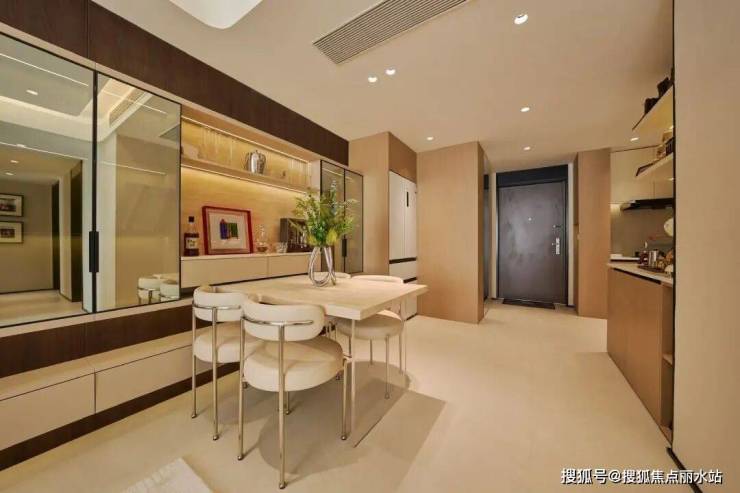 餐厅更加小资,餐桌旁打造了多功能柜,可根据家庭成员的爱好进行布置,不仅能满足个人的兴趣爱好,也能成为家庭社交平台