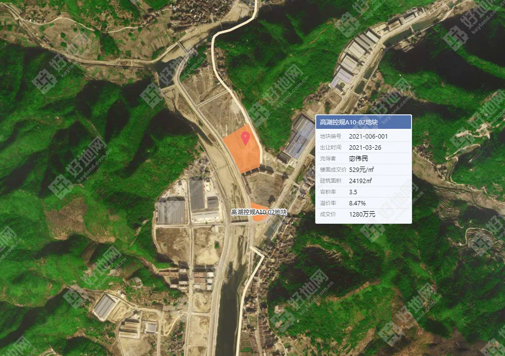 地块南侧,今年3月26日,宓伟民以总价1280万元竞得高湖控规A10-02地块,楼面价529元/㎡,溢价率8.47%。