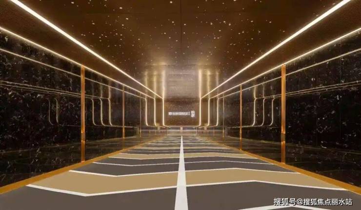 地下室公区同样出自大师设计——美国CDI创意国际设计集团,下车坡道星空顶加流线型灯带,玫瑰金属包边,两侧的墙面同样采用进口奢石,质感非凡。停车场地面采用水磨石及环氧地坪漆,不仅耐磨性更强,也更有质感。双大堂设计,仪式感必须给到位!