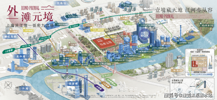 外滩元境坐落于内环旁,大桥东“低密九宫格”内。