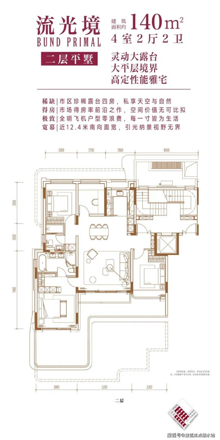 主力户型客厅面宽约5.2米,即便是二三楼建面约135-140㎡4房主力户型也能有如此面宽。