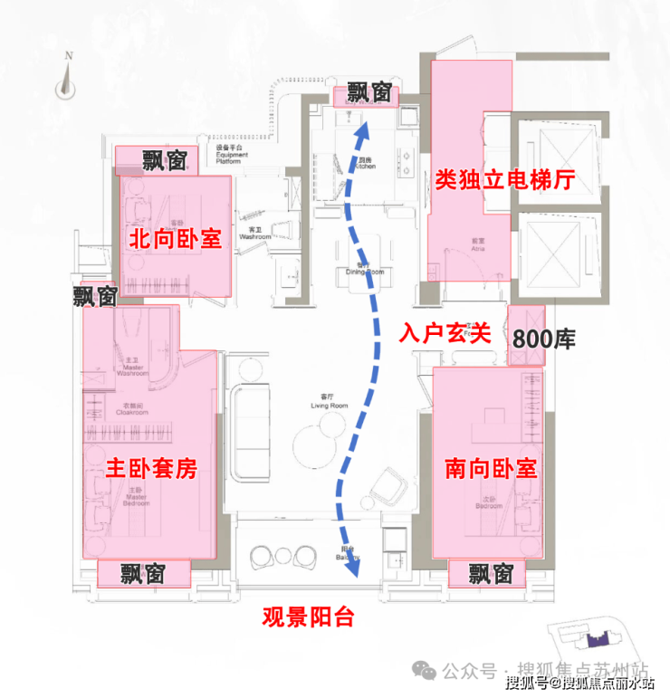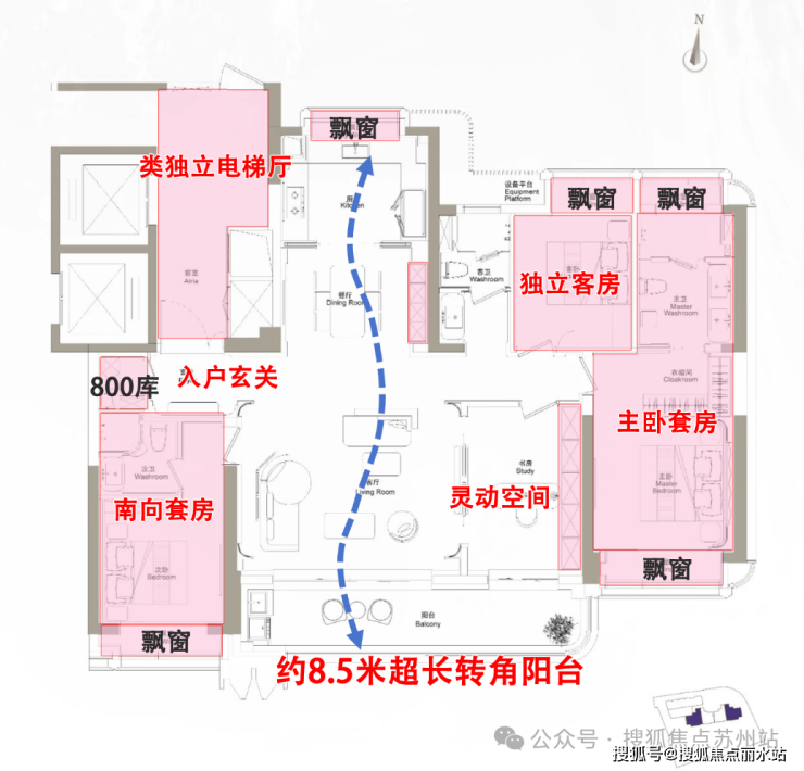 近全飘窗设计,扩展了生活的尺度感;主卧豪华套房设计,兼顾私密性与居住舒适度!