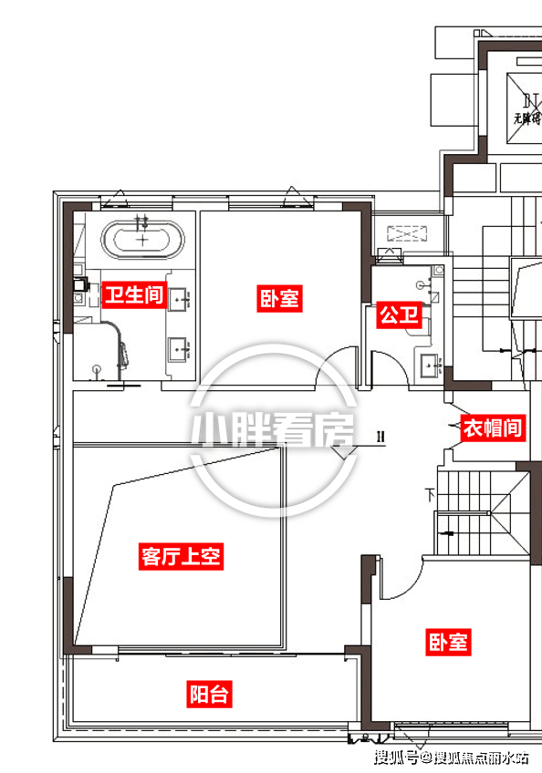 二层设计了两个卧室,朝北两个卫生间,客厅上空可改造,连接卫生间组成超大主卧。