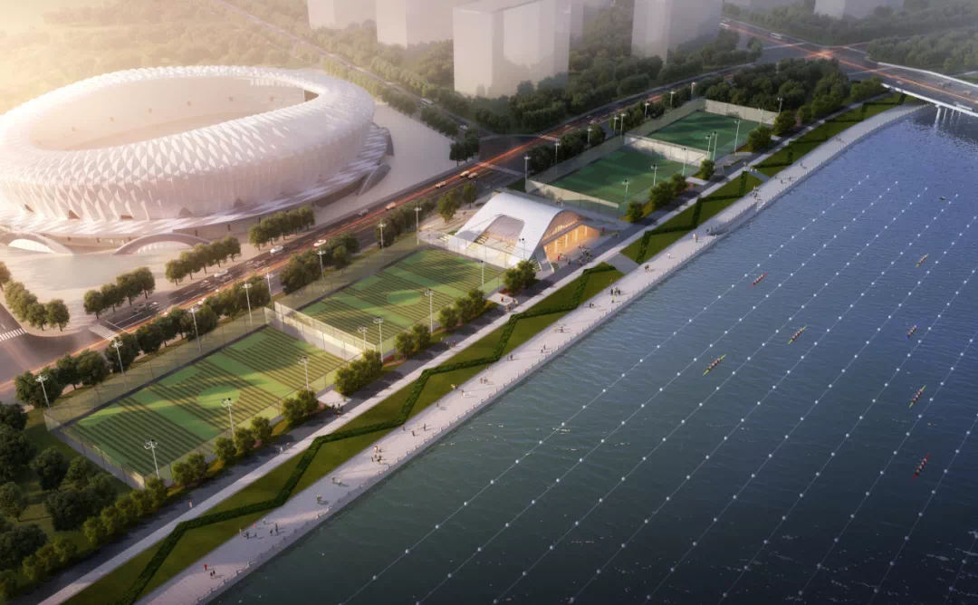 该项目由市城投公司下属市水发公司建设,总概算1793万元,预计于2022年6月建成投入使用。项目位于江滨绿化带,社后大桥以西、笼式足球场中间地块,建设用地面积约3676平方米,总建筑面积约2512平方米,主要新建船库综合用房1幢,长2030米、宽180米皮划艇静水比赛赛道1条,设置赛艇及划艇比赛航道设施;新建下水平台一处,观赛看台一处,迎水坡台阶一处;配套建设给排水、暖通、电气、弱电、消防和绿化等附属工程。