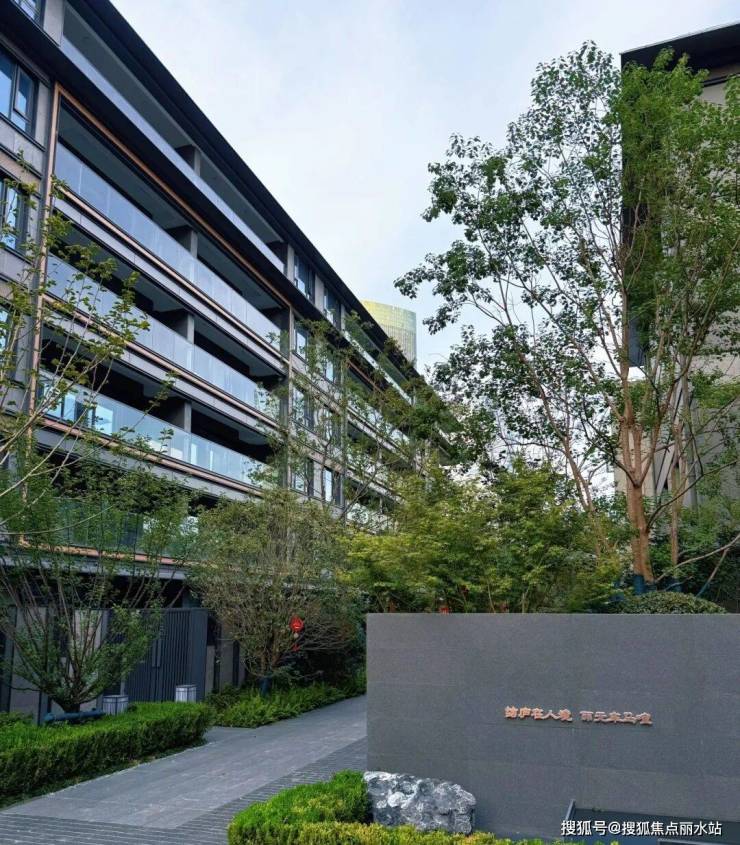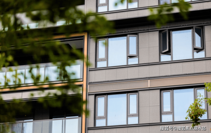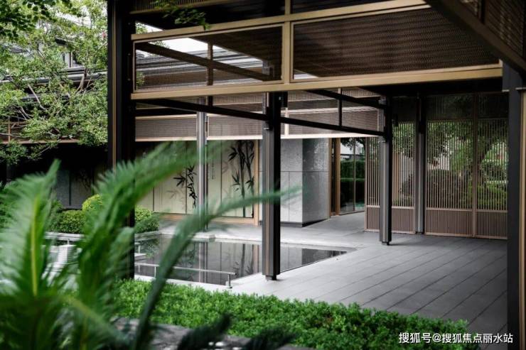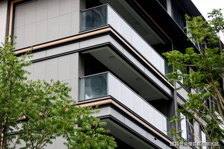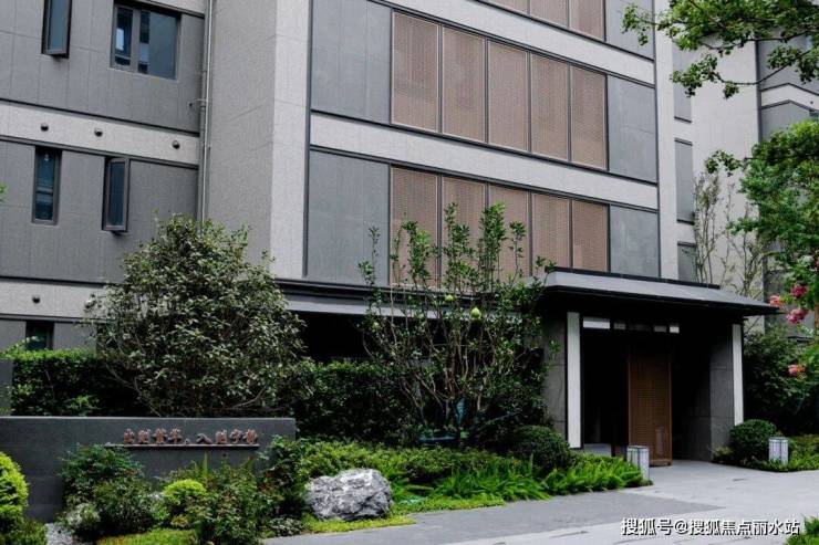 步入实景园区,扑面而来的是对细节的极致把控。建 筑立面以现代手法转译无锡古建筑精髓,横竖错落的铝板线条勾勒出博古架式花格纹样 ,倾斜的金属披檐与窗棂在阳光下泛起细腻光泽,既传承东方美学,又彰显当代奢居气质。