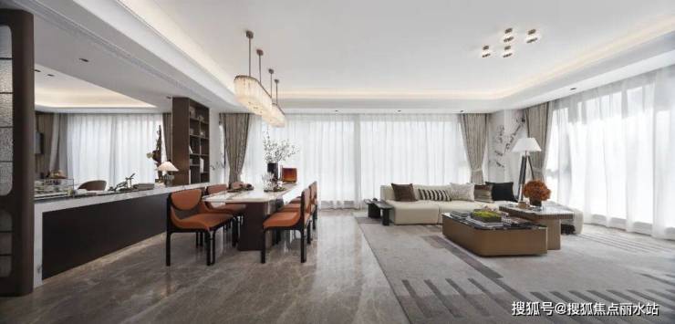 这套户型,可以将约36㎡方厅与次卧打通,实现180㎡大平层级别的270°宴会级全景舱。