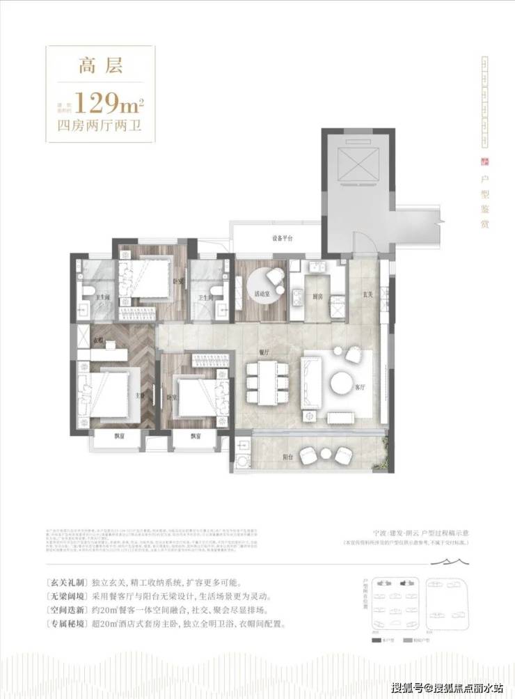 高层129户型:餐客厅与阳台无梁设计、超大餐客厅、动静分区、无暗间