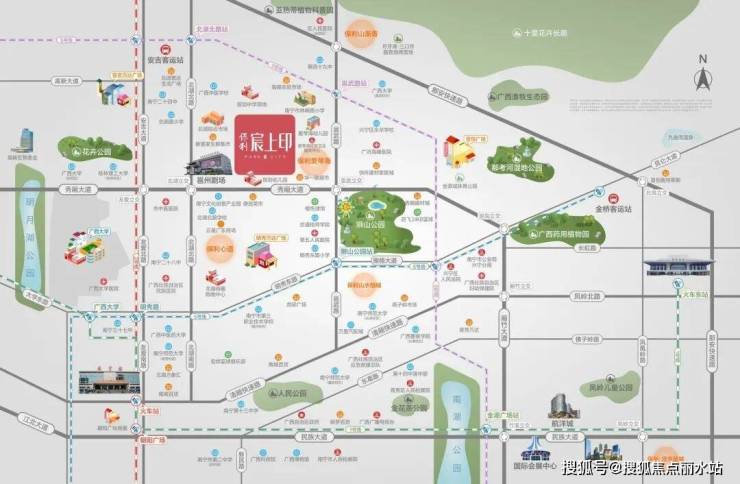 商业配套:保利宸上印雄踞秀厢大道中央,西乡塘区、青秀区、兴宁区三大主城区核芯位置,荟萃醇熟学铁商园等城央配套。快环主干道全线无红灯,往西速达广西大学商圈,往东链接青秀万达、航洋万象商圈,往南则是醇熟北湖商圈、朝阳广场,繁华配套触手可及;