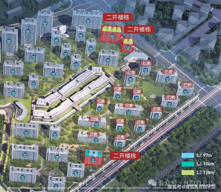建面约97-128㎡精装洋房,一梯两户、超高得房率,填补城北CBD空白;基于9米板、15米板上盖开发优势,具备TOD洋房“云端视野”,居高揽胜城市风景。