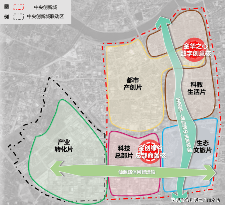 将目光聚焦金华,在城市向上发展的澎湃浪潮中,中央创新城CBD依托区位优势与政策倾斜,正以"两区联动、五片共荣、两轴引领、两核聚能"的格局起笔,将打造"数字硅巷·创新湖区"的崭新名片。截至目前,中央创新城(南区)累计投资额已超90亿元(来源:金开发布官微),随着仙源路湖底隧道、文化新天地一期等重磅级规划的落地,在为区域发展注入了强大动力的同时,更勾勒出一幅强兑现、高成长的全新价值版图。