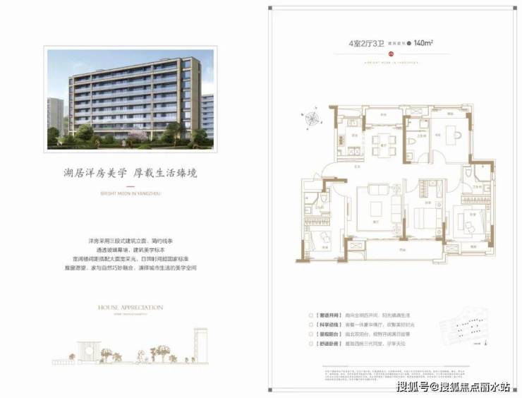 建面约140㎡洋房户型 4室2厅3卫,四开间朝南的设计,无论是在客厅的沙发,还是卧室的软塌上,窗外的旖旎湖光一览无余;
