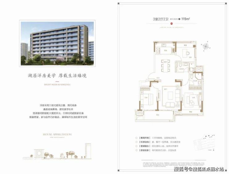 建面约115㎡洋房户型 3室2厅2卫,三开间朝南,卧室、书房环抱餐客厅,妥妥的生态湖景房无疑。