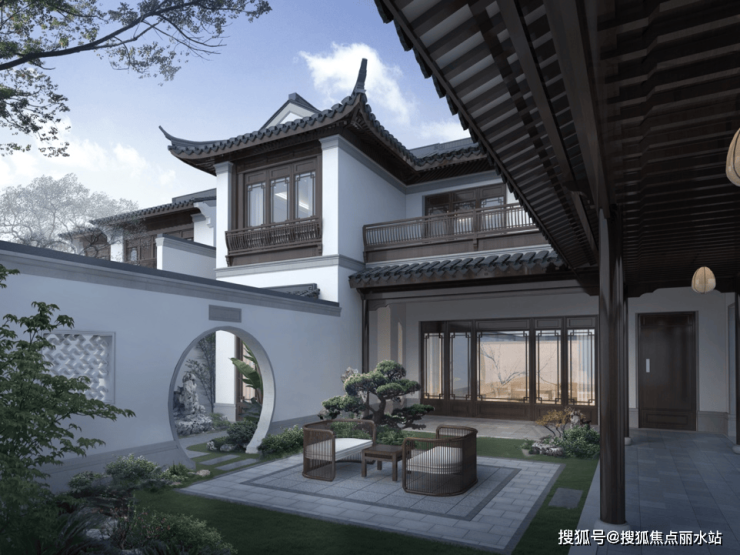 据了解,春江明月的合院建筑,沿袭了扬州盐商“宅+园”的居住模式,在建筑上汲取传统扬州建筑元素,同时融汇现代工法与美学,在筑院、造园、铺景等维度上层层刻画,诠释了扬州的建筑风格。