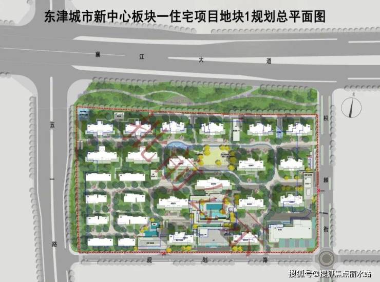 东津城市新中心板块一住宅项目地块1位于东津新区襄江大道以南、五一路以东,由襄阳城锦建设有限公司开发建设。