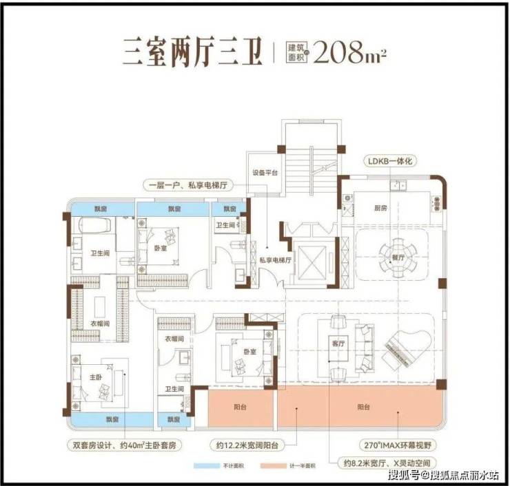208㎡户型更是做到了一层一户,私梯入户,足够尊贵,堪称终极改善样板。