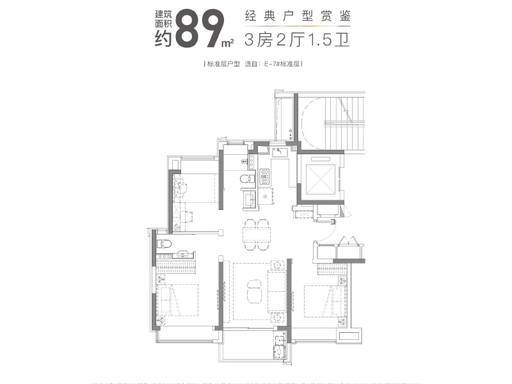 (一)建面约 89㎡三房两厅一卫:刚需爆款,小户型大格局