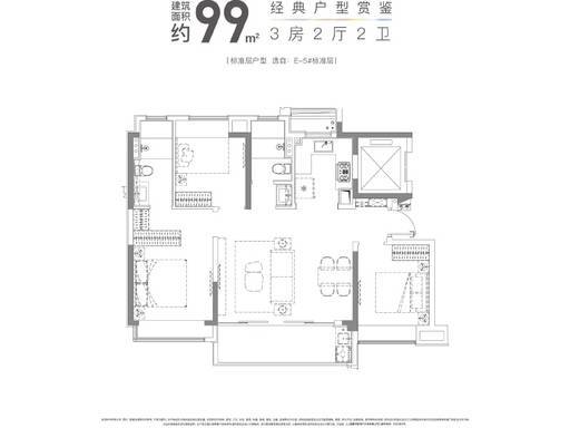 (二)建面约 99㎡三房两厅两卫:刚改优选,宽厅奢适体验
