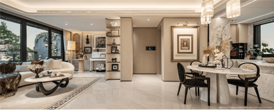 独立大餐厅,可放6人大圆桌;约5.45米大开间厨房,不仅带来收纳空间的扩容,也为社交新场景提供了更多可能;