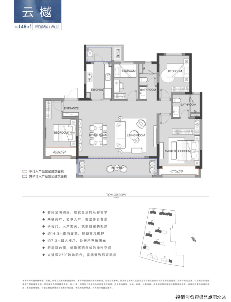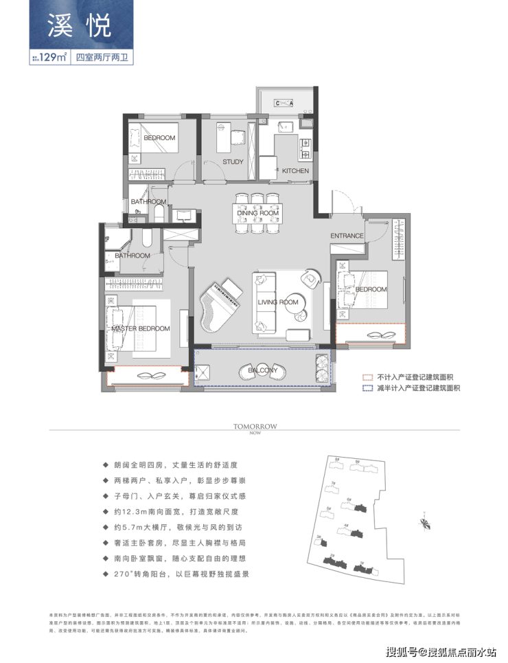 两梯两户、独立电梯入户设计,礼遇尊崇的归家仪式感。建筑面积约129-148㎡全改善户型,全生命周期享受,满足全家所需的空间场景;将光线充分加入空间设计,四开间朝南、大面宽、270°转角阳台等设计,让生活充分享受阳光的滋养;